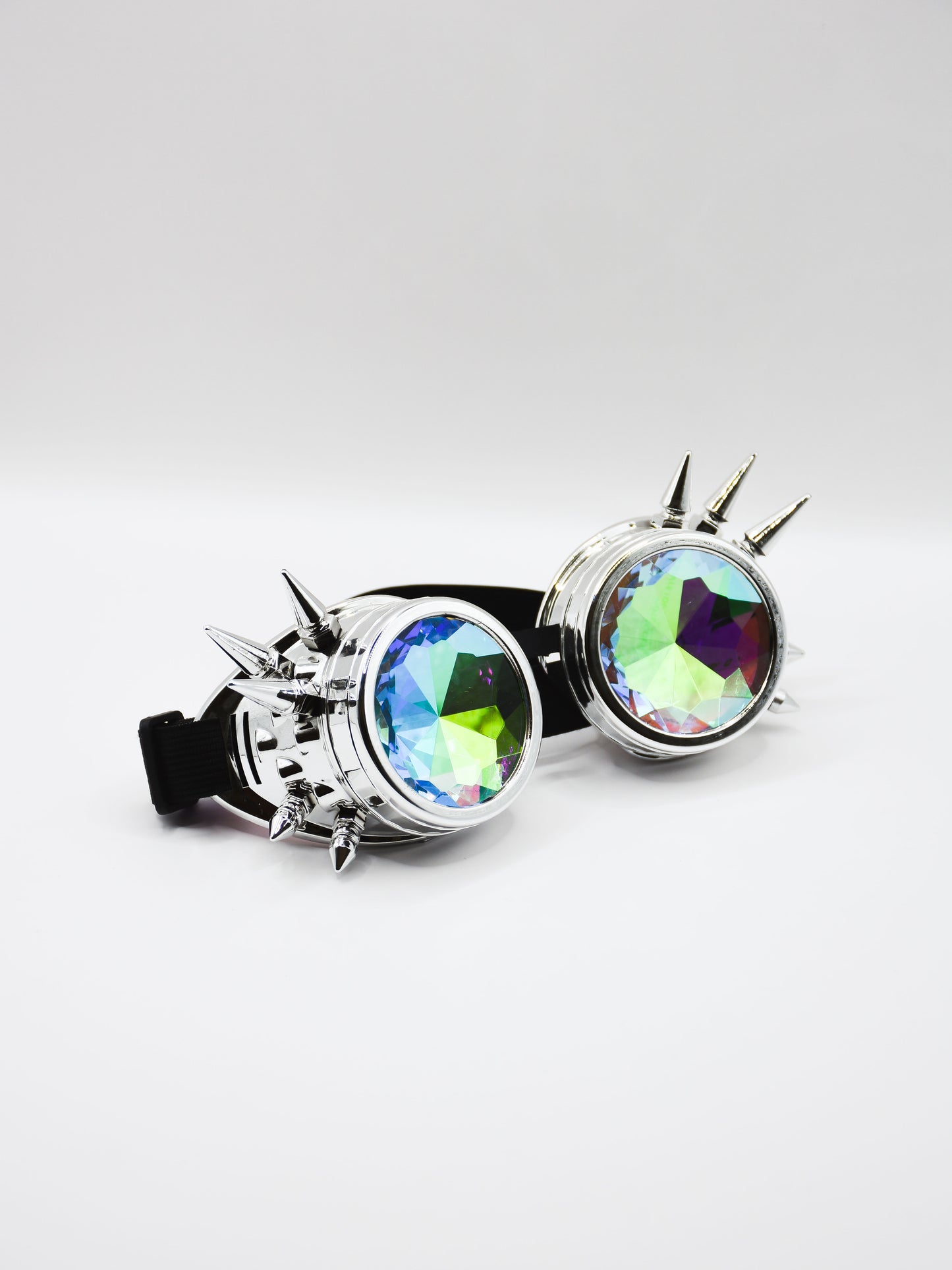 Intergalactic fantastic! The FIND GLOBAL edgy goggles come with removable kaleidoscope lenses, Silver spiked detailing, and an adjustable elastic strap. Take your dress-up game to the next level and enjoy a free trip with these cosmic goggles.