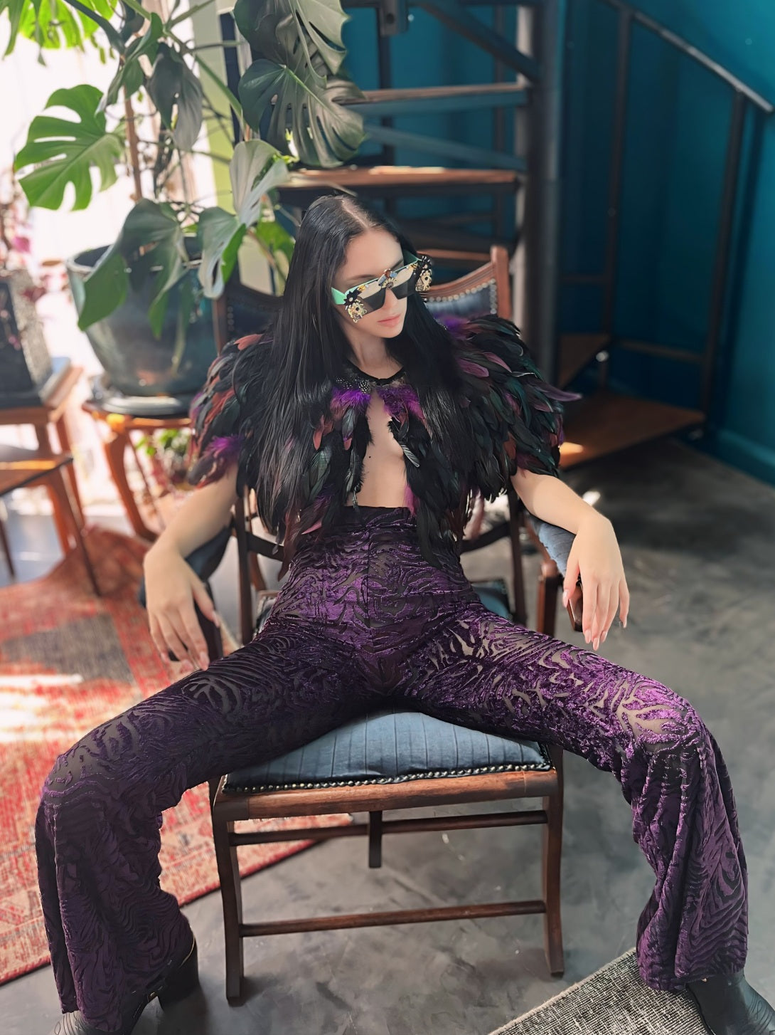 Purple Sheer Velvet Bell Bottoms