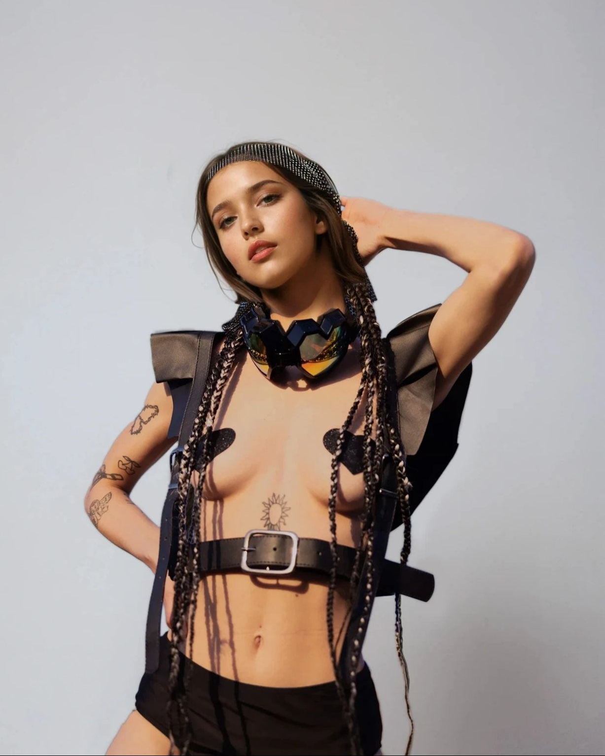 FIND GLOBAL Leather Harness Halter features vegan leather, adjustable straps for the perfect fit, and rouged detailing at the straps over the shoulders for a girly yet edgy look.