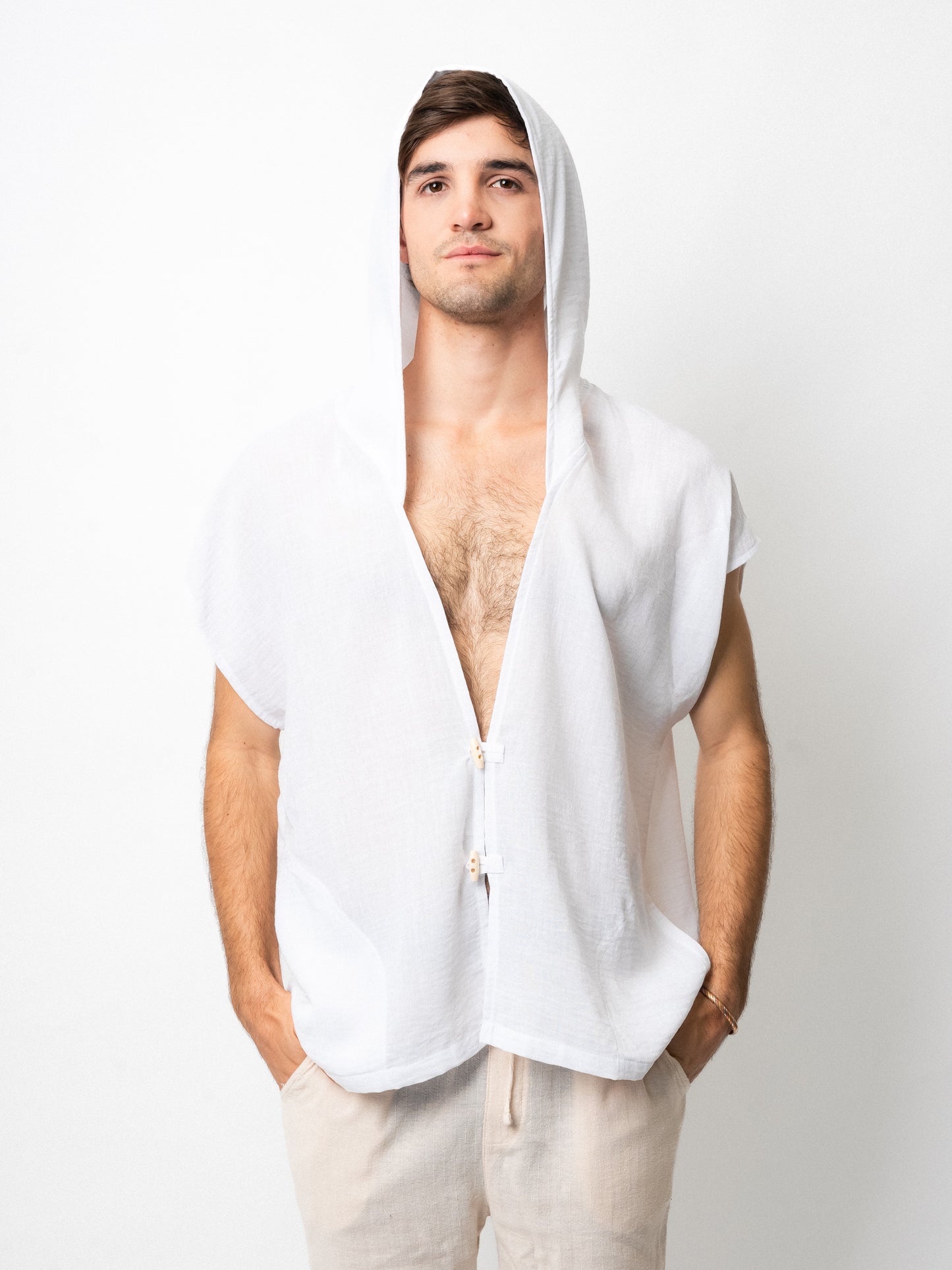 Crafted from breathable beige cotton, this cropped button-up with a hood combines casual comfort with bold design. The relaxed fit keeps you looking effortlessly cool. Whether you’re out exploring or just owning your day, this shirt brings the perfect blend of laid-back vibes and statement-making style. Ready to take on the world?