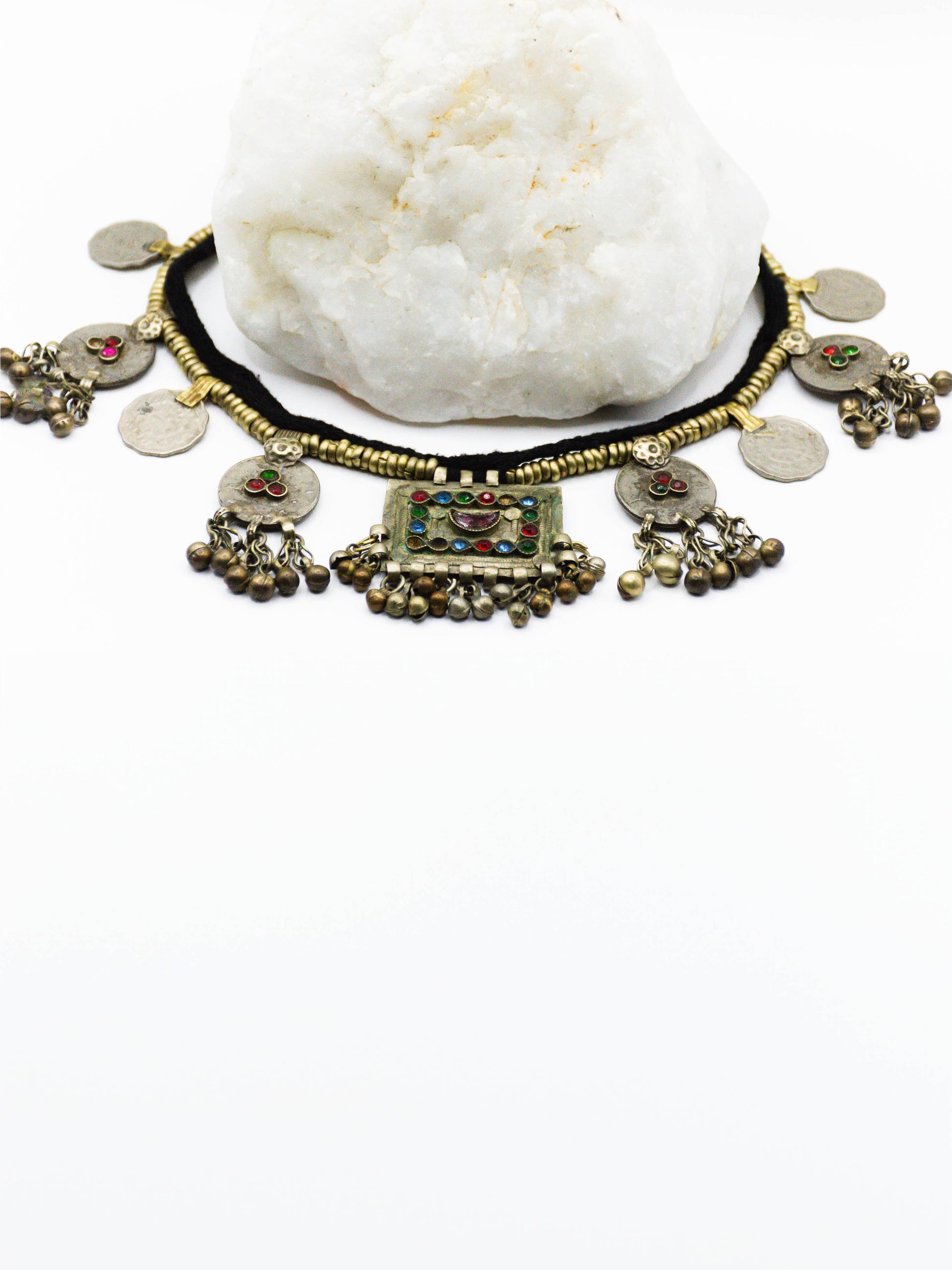 Your vibe your tribe! FIND GLOBAL presents a range of truly unique vintage silver tribal necklaces, handcrafted with silver coins and adornments on a cotton rope base. This one-of-a-kind piece boasts intricate tribal designs and features a convenient button closure at the back. Embrace tradition and elegance with this captivating necklace you won't ever find again.
